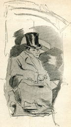 ![]() Edmond de Goncourt dans une gondole, à Venise, dessiné par Jules de Goncourt. E. et J. de Goncourt, L'Italie